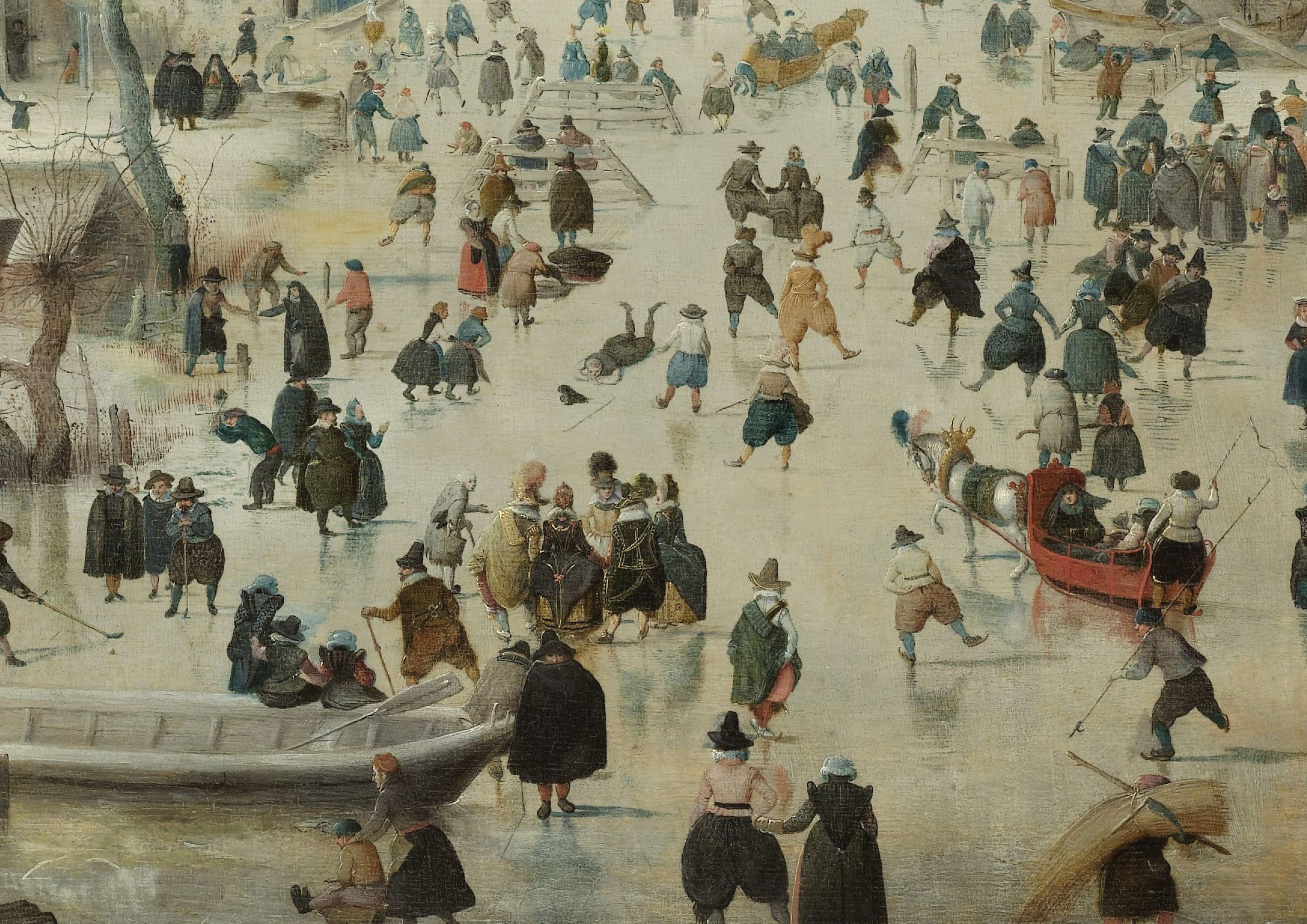 Elsewhere, there is even more for us to see; from handsome couples and lovers taking a stroll along the ice - to shady dealers exchanging money - to families at leisure, and friends playing ice hockey - to the poor peasants diligently pressing on with their work in spite of the ice.